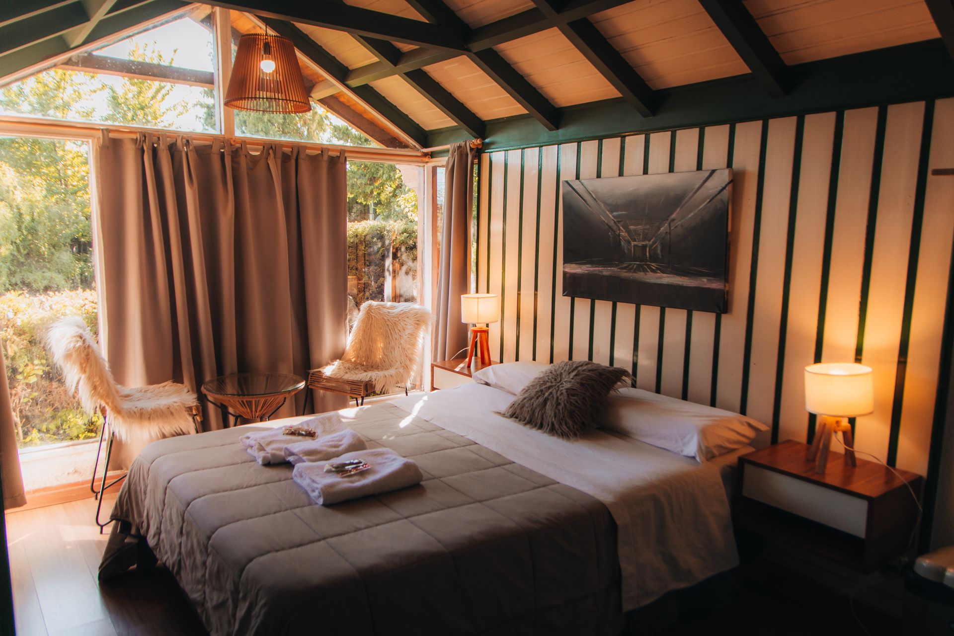 Baño y cocina privada | Desayuno incluido | Aire acondicionado frio/calor | Frigobar | Calefacción | Pava eléctrica | cafetera | tostadora | anafe eléctrico | batería completa de cocina | Secador de pelo | Deck privado con solárium | Fogonero